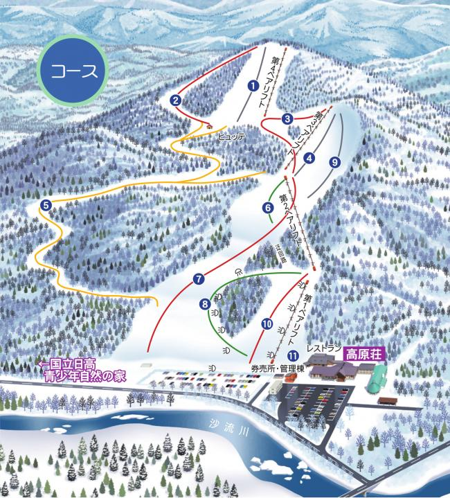 ペアリフト4基で10コースの比較的大きなスキー場です