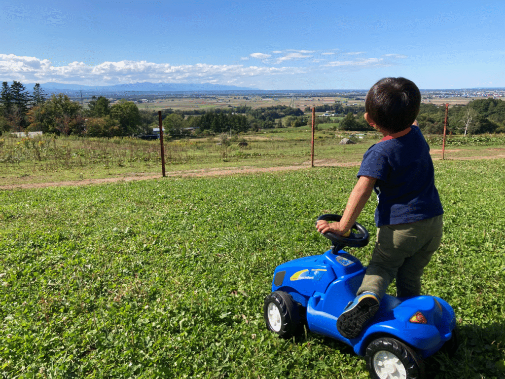 札幌から車で約1時間の立地で、ヤギや羊とふれあい、動物にエサをあげたり、広大な自然を駆け回ったりできます