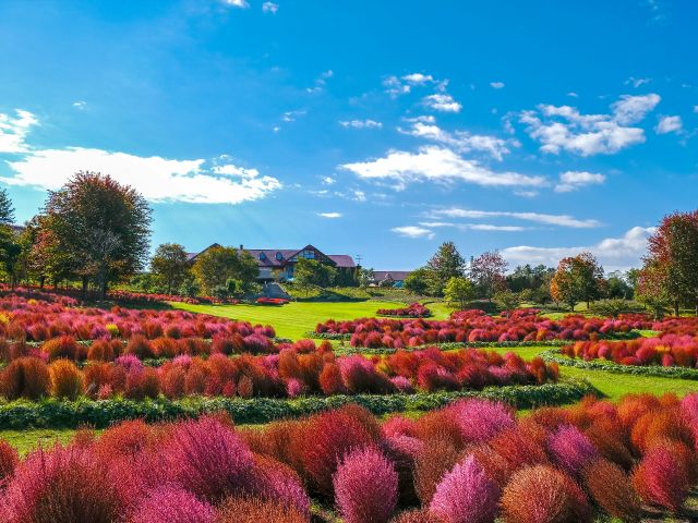 夏はバラ、秋はコキアが見どころで、近隣に温泉やキャンプ場もあり、セットで楽しめますよ!!